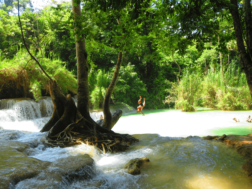 The falls consist of many different pools and are an amazing place to spend the day. The Kuang Si Waterfall is only a short tuk-tuk journey from the tourist town of Luang Prabang!