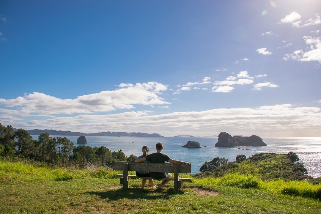 The hardest part of the walk to Cathedral Cove is after Stingray Bay. Here, you start to climb a hill. The hard work doesn’t go unrewarded though, because at the top of the hill there is a pretty cool lookout and a bench to catch your breath.