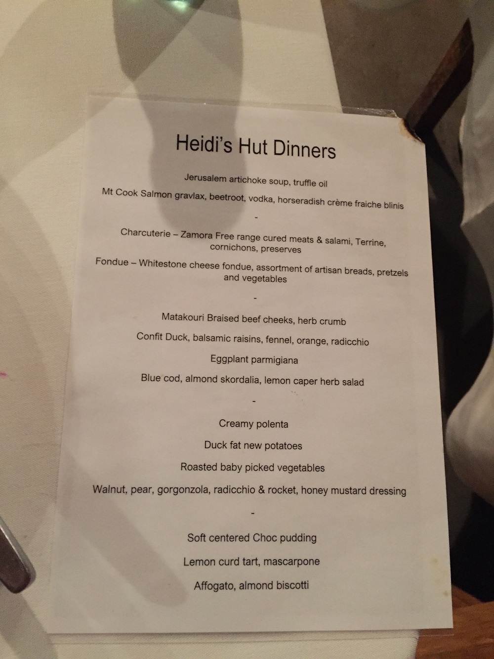 For $135 NZD (under $100 USD) you get the ride to and from Heidi’s hut, all 15 dishes, as well as a glass of champagne.