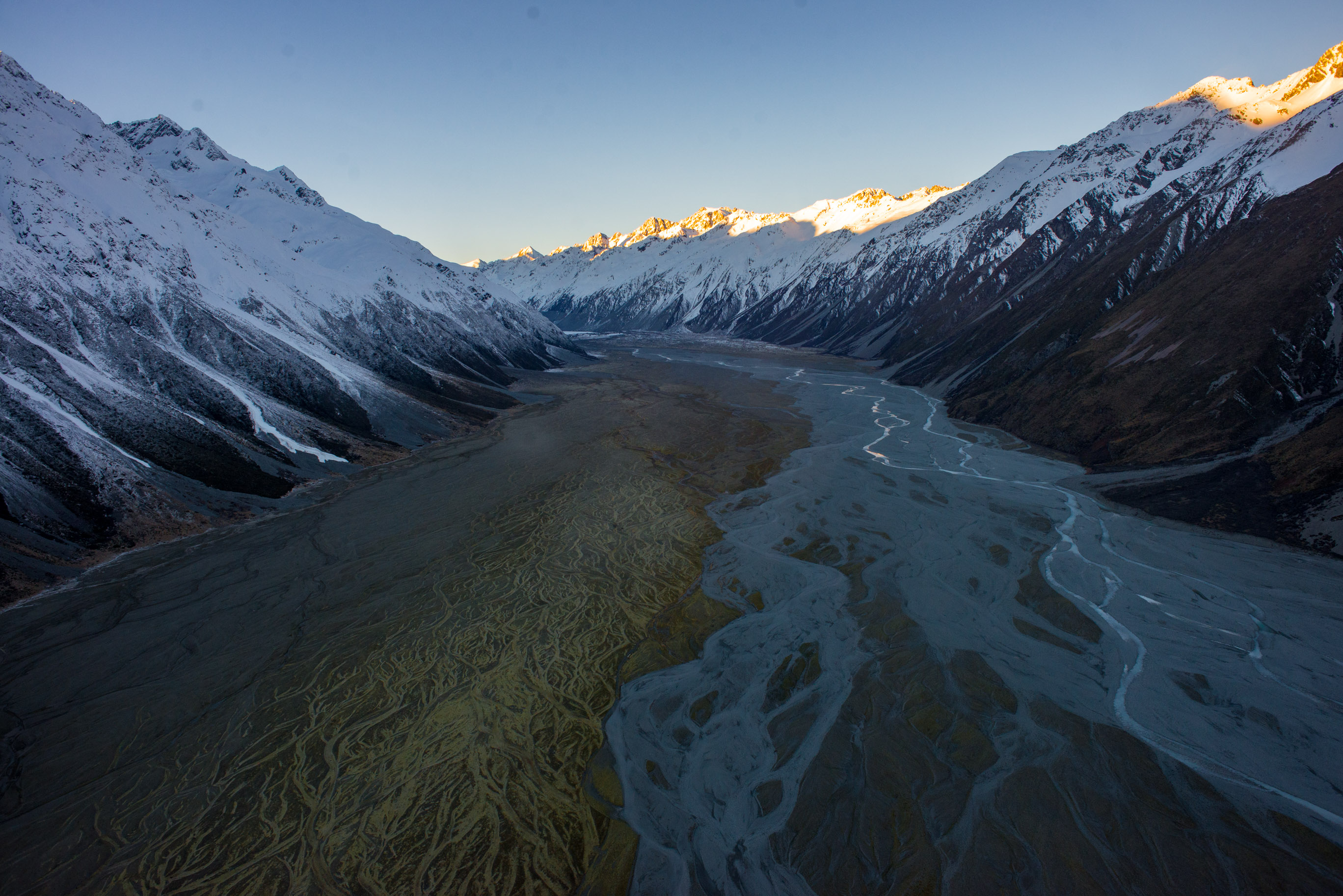 The Valley floor of Mount Cook National Park from a helicopter tour