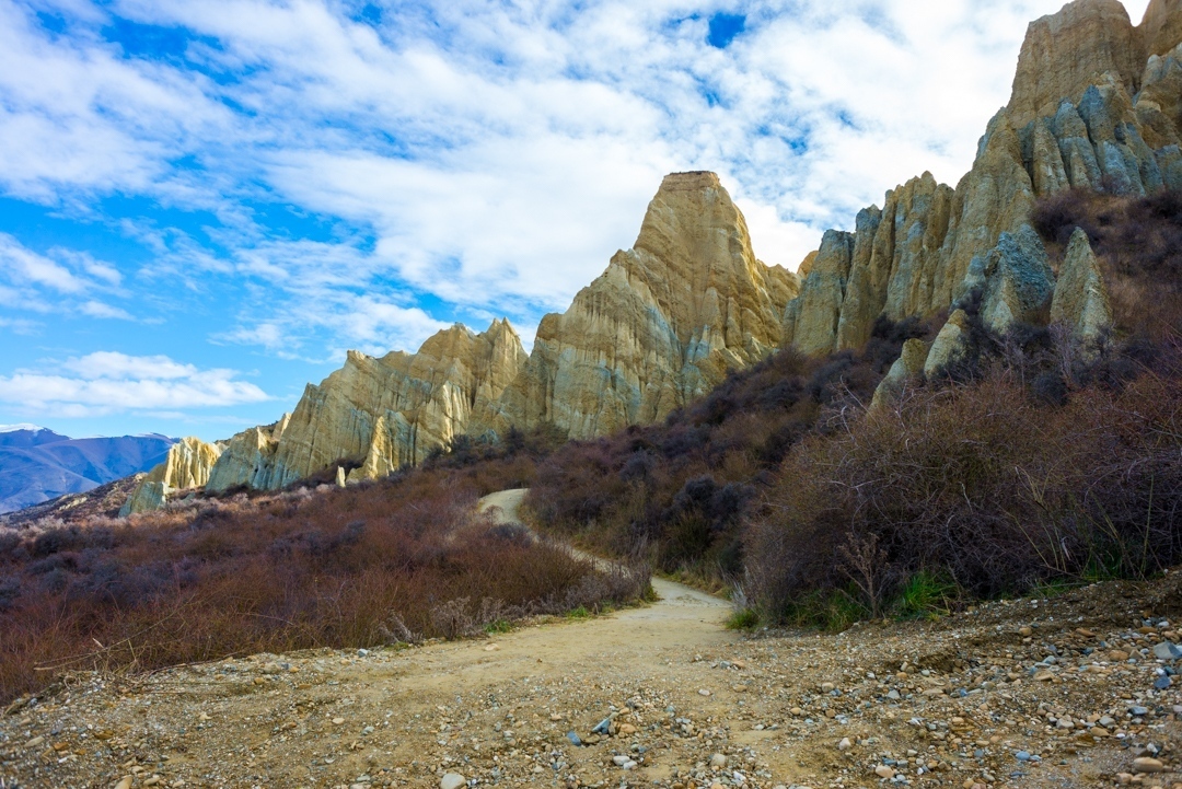 Once you reach the Omarama Clay Cliffs, there is a short path that leads up to them. At the end of this path, you can then venture around as you please.