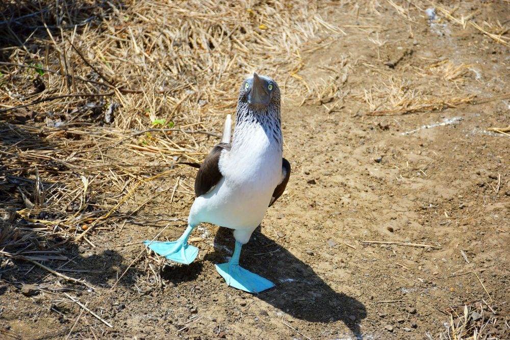Blue-footed boobies are not intimidated by humans as they have no predators on the island and the one we saw actually put on a little dance show while we took photos.