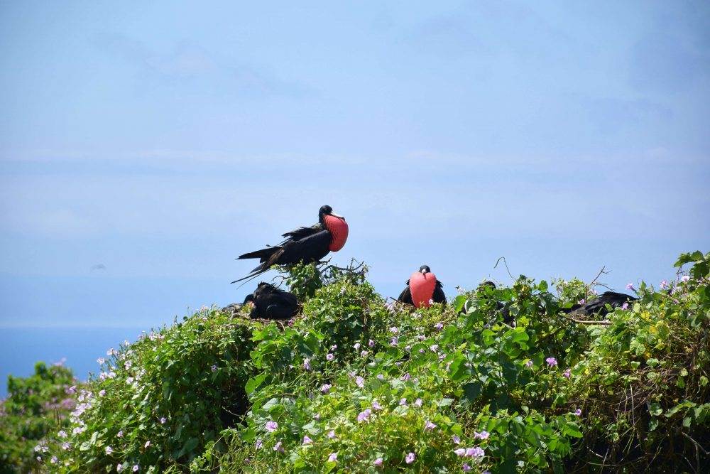 Already so excited by the experience, we continued on to a massive nest of Frigatebirds. We were lucky enough to be there during the nesting season and even saw a few chicks in the nest. The male Frigatebirds have the strangest red pouch on their necks which is what attracts the females.
