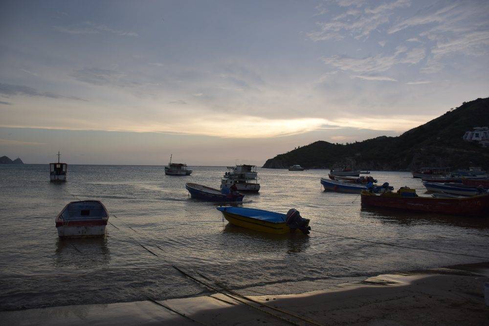 A photo of the fishing boats from the shore of Tagamga, Colombia