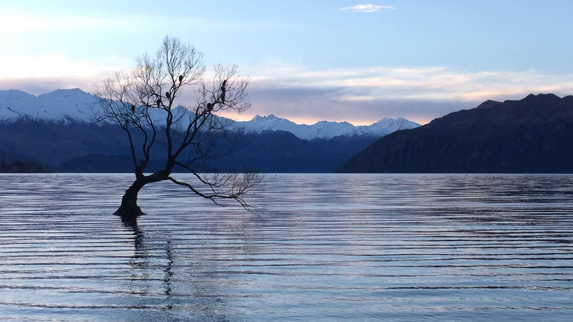 If you keep walking on the edge of Lake Wanaka you’ll see the tree!