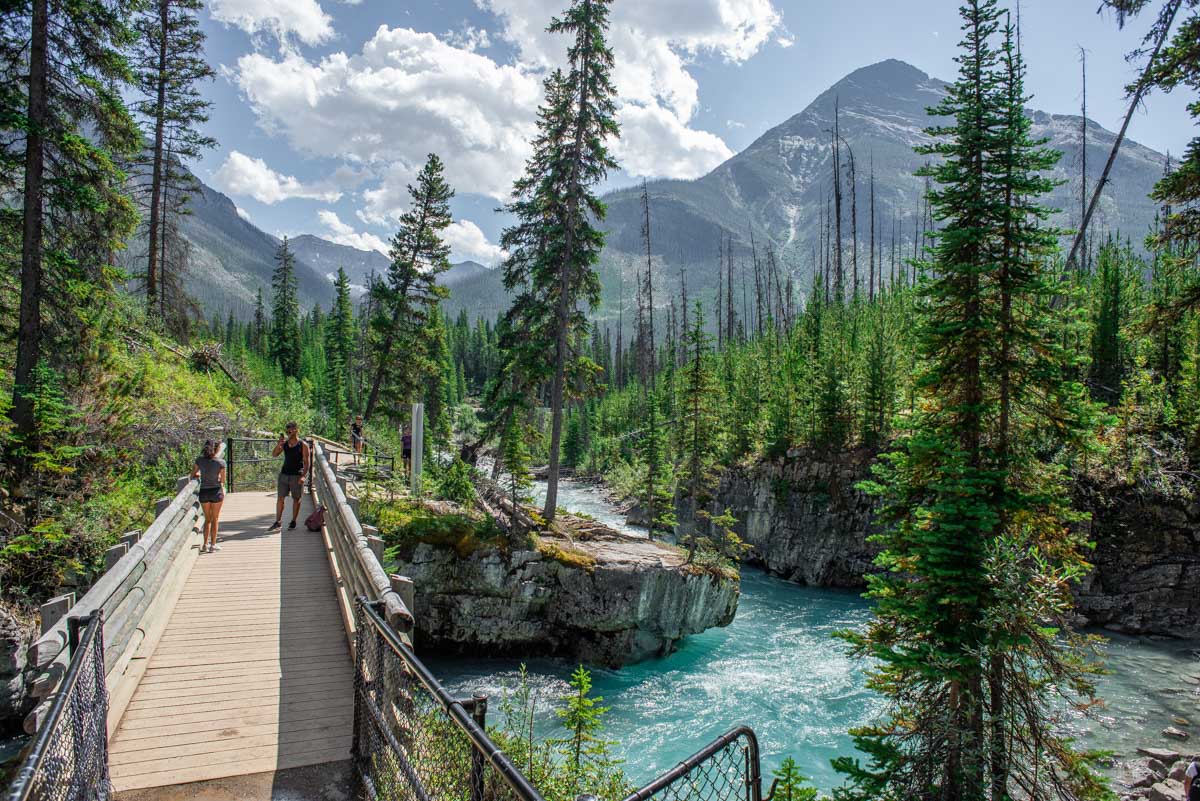 Marble Canyon is one of the best Kootenay National Park attractions because it’s easy to get to and absolutely spectacular to see. Park in the Marble Canyon parking lot right off the highway and start your walk along the bright, blue waters of Tokumm Creek.