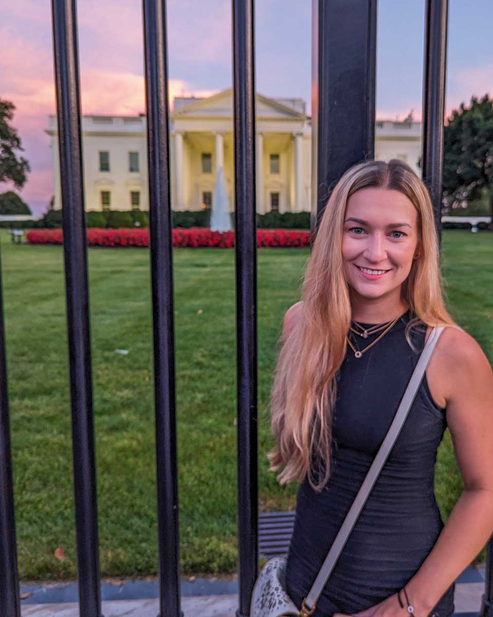 Daniel and Bailey take a selfie in front of the White House in Washington DC