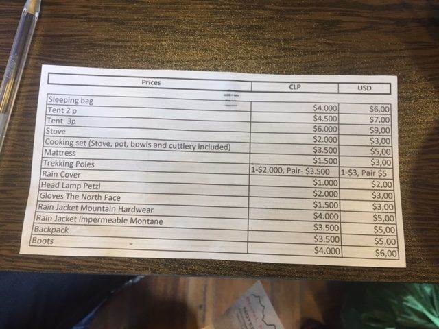 In Puerto Natales, there are lots of places you can rent hiking and camping equipment. However, after hiking the trail twice and using the same company I highly recommend renting your equipment from Rental Natales. This would be the place to get things like a backpack, hiking boots, or even a large water bottle.