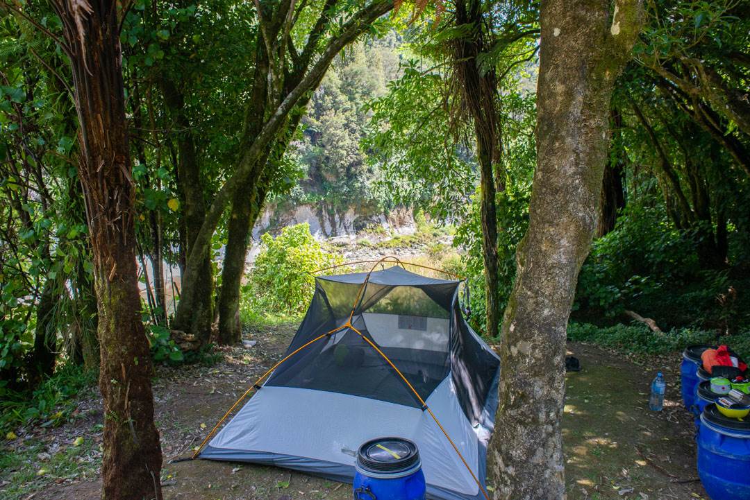 If you want to camp, there are more options for you. Many of the campsites are near empty even in the peak season as so many people choose to stay in the huts. Dan and I chose less popular campsites for this reason and had both campsites all to ourselves – not a soul in sight! We stayed at Ohauora and Mangapurua on our 3-day 2-night journey.